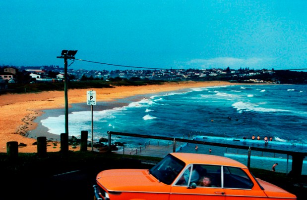 Part of what makes them so beautiful is the sheer saturation of colour, not just the blues of the water but its greenness, the yellow of the sand, even the brooding, impossible purple of late afternoon cloud. I suspect to many it’s a saturation that will seem immediately tropical, but oddly enough I remember standing in front of these pictures in the gallery and being immediately, unshakeably certain that Autio was from South Australia like me. It wasn’t the subjects of the photos – indeed I’m reasonably certain the photo that made me so sure she and I grew up near each other, ‘Orange Car’, is actually of somewhere in New South Wales – rather it was something about the quality of the light and its intensity, the degraded nature of the yellows.