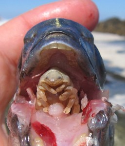 The front page of this morning’s Daily Telegraph is given over to a photo of a huge bull shark struggling on a hook in Sydney Harbour. The face of the shark, which is somewhere between 2.7 and 3.0 metres long (about 9-10 foot to those of you on the old system) is a ghastly sight, its pale, corpse-like eye swivelling downwards, its mouth twisted back by the line.
