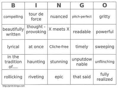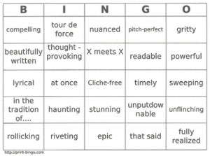 This time last year The Book Examiner’s Michelle Kerns compiled a list of the 20 most annoying book reviewer cliches. Now, in the interests of having a bit of fun with them, she’s gone one step further, and compiled cards allowing readers to play Book Review Cliche Bingo.